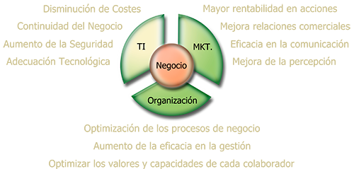 Igualmente, estudiamos los modelos de negocio (actividades, interrelación entre áreas de responsabilidad, procedimientos, etc.) para optimizarlos, con el fin de: